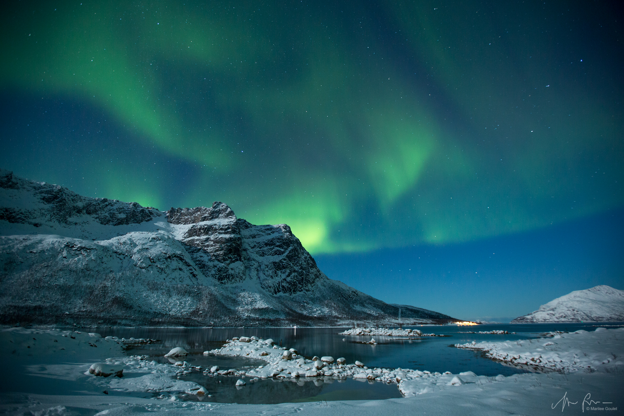 * We were a bit in the deep snow, but Tor and I made a first track down to the water. The couple helped the lonely traveler to walk around in the snow while I was taking the GROUP pictures (they were so lovely).